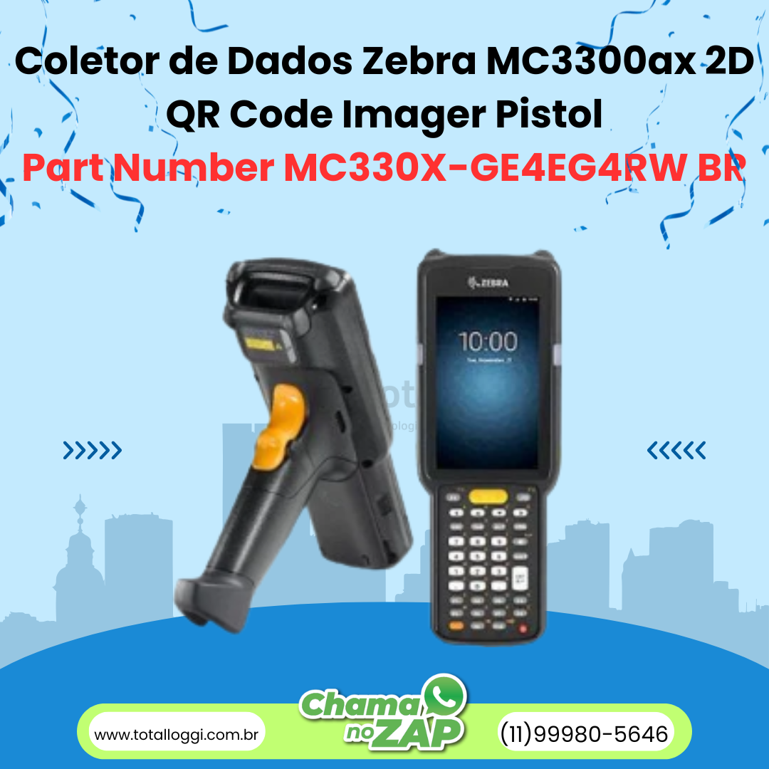 Coletor de Dados Zebra MC3300ax 2D QR Code Imager Longa Distância - Touch 4 Polegadas, Alfanumérico, Wi-Fi 6, Bluetooth, Android 10 - Pistola Gun