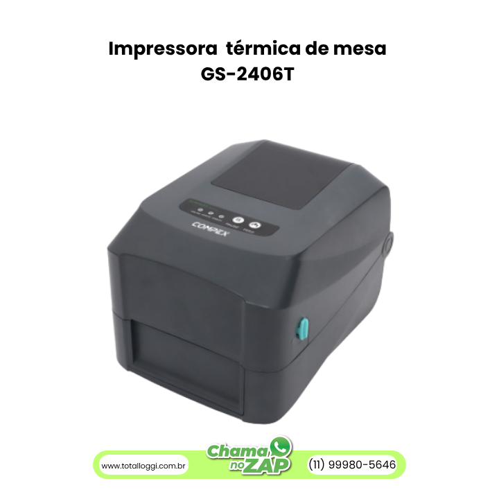 A GS-2406T é uma impressora de transferência térmica, com velocidade de impressão de 152 mm (6”) por segundo para 203 DPI. Possui processador ARM9 de 400 MHz e 32 bits com SDRAM de 64MB e memória Flash de 32MB.