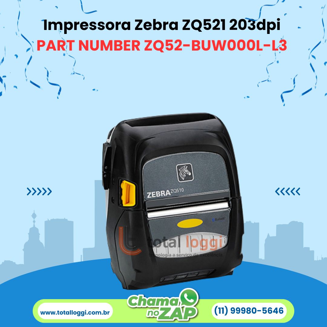 Impressora Zebra ZQ521 203dpi - Portátil com Bluetooth e Wi-Fi