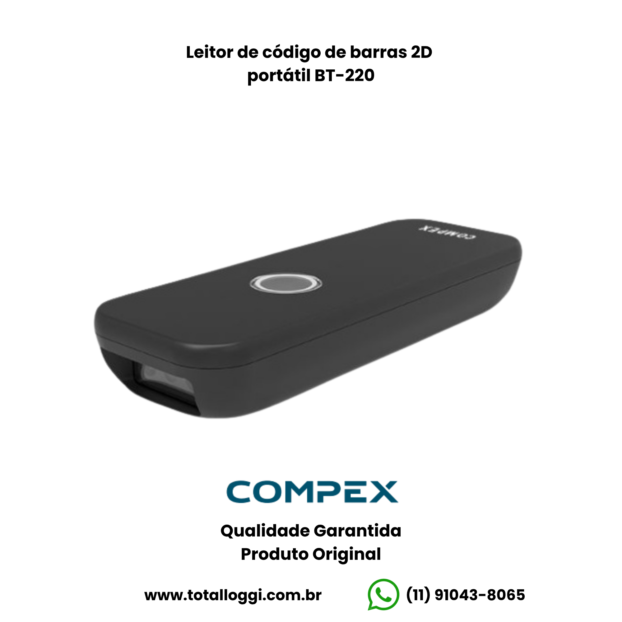 O leitor de código de barras BT-220 é portátil, leve e moderno, com um tamanho que cabe em seu bolso. Realiza leitura de códigos 2D e opera nos modos Bluetooth e 2.4GHz. A bateria aguenta até 15 horas de trabalho contínuo.